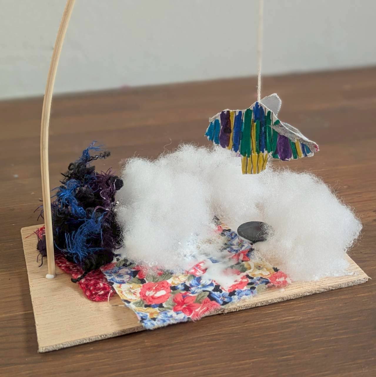 ダンボールで織り機を作って毛糸で織物をしました。