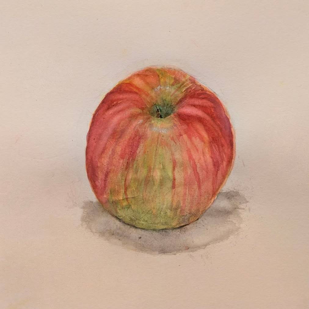 中学1年生がりんごをモチーフに水彩画にチャレンジしました。