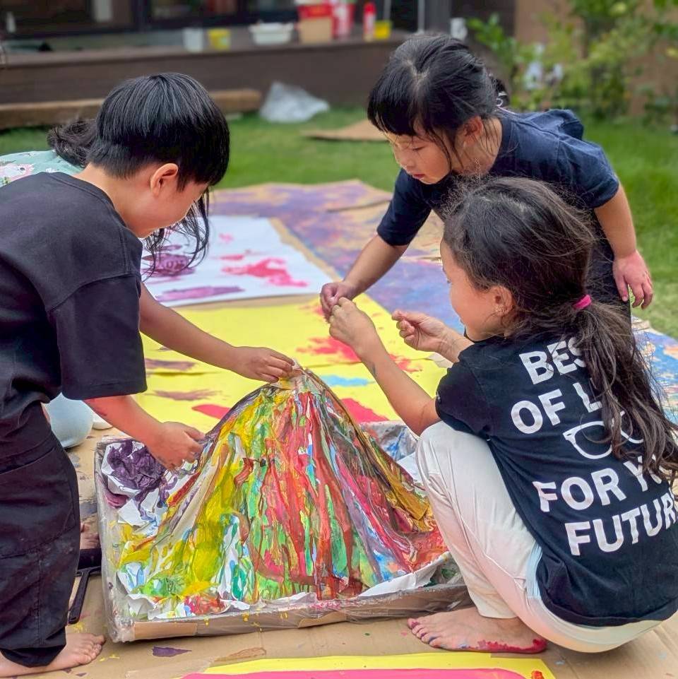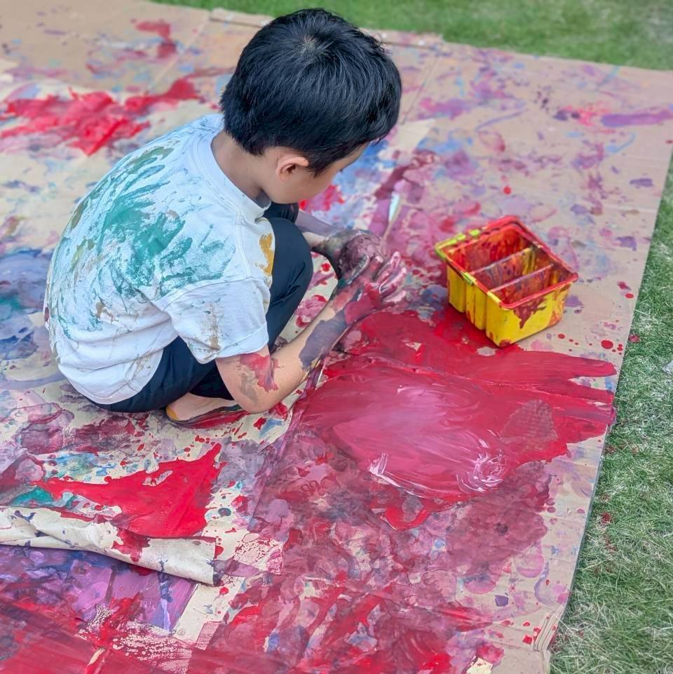 やっと涼しくなった10月、庭で皆んなの大好きな塗りたくりをしました!