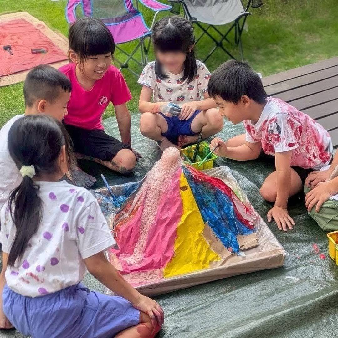 今年もクラスの数だけカラフルな火山が噴火し、皆んなでワイワイ楽しみました!