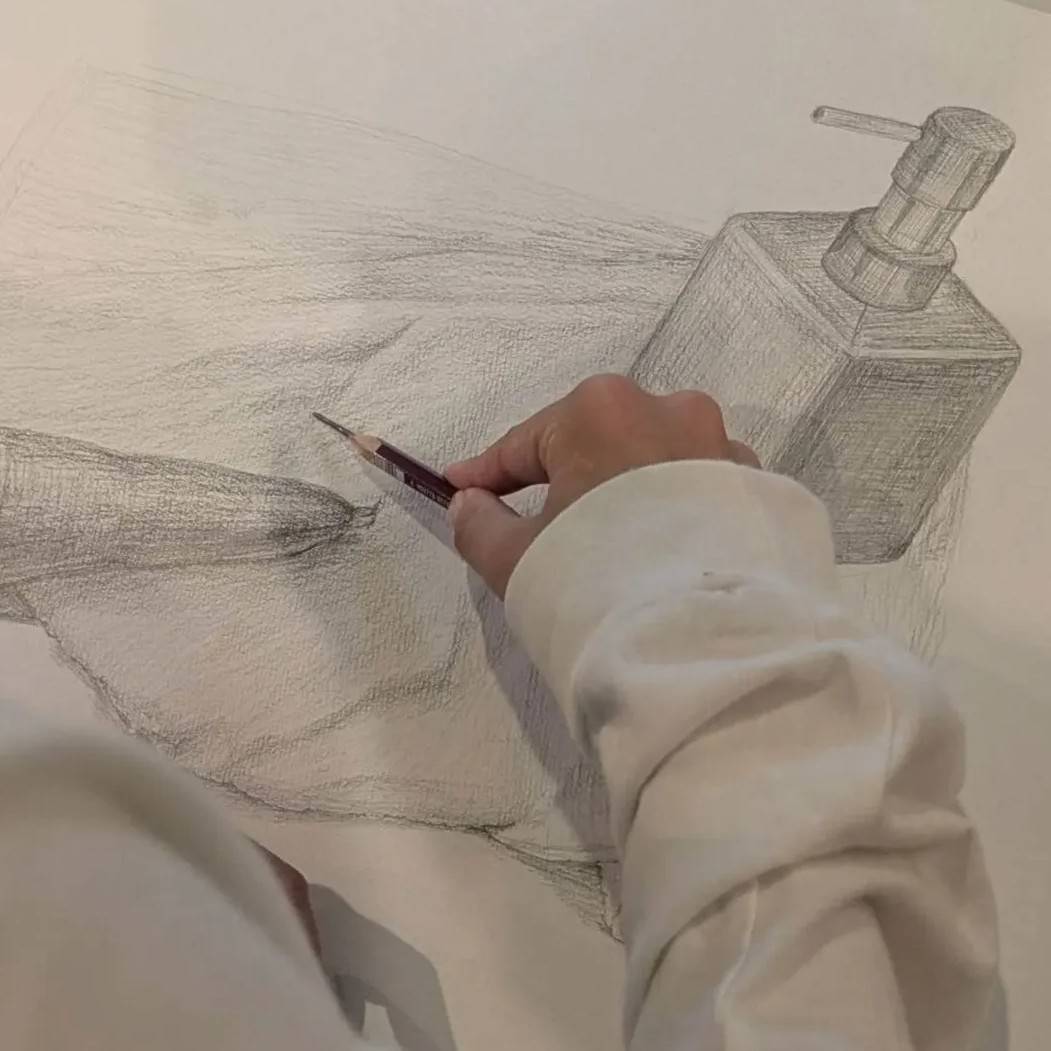 以下をモチーフに受験対策のデッサンを行いました。 ・人参 ・フェイスタオル ・ディスペンサー 既に形含め良く見て丁寧に描くことが出来ているAさん。 仕上げはスピードと絵力(迫力)をプラスしていきたいと思います。あと少し、頑張れっ! 2枚目の画像は自宅で自主練したデッサンです。