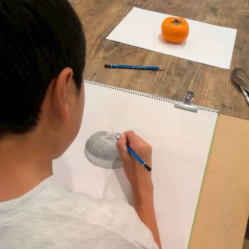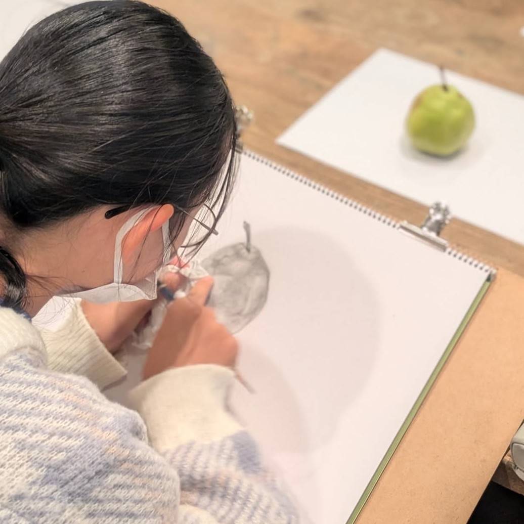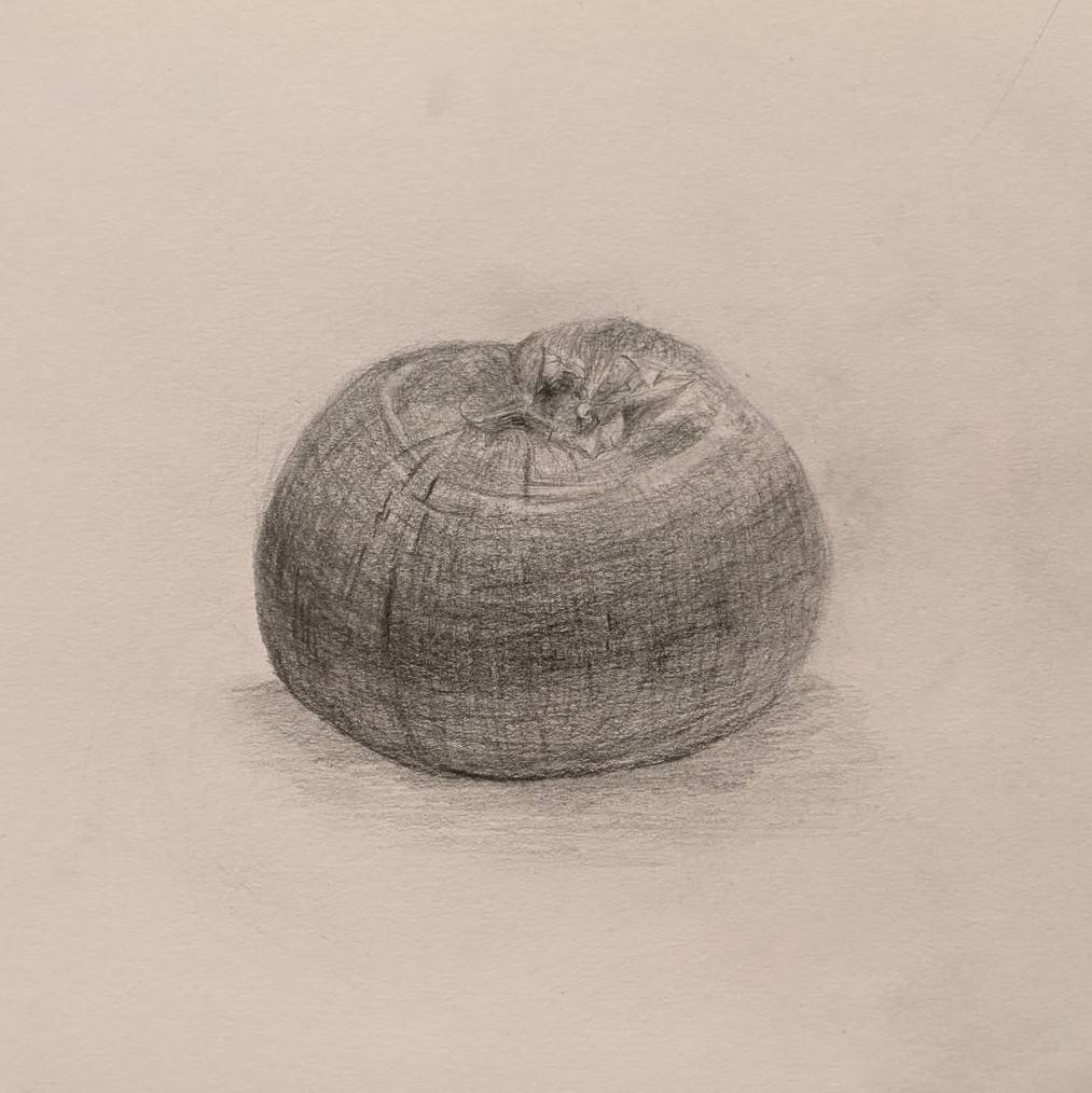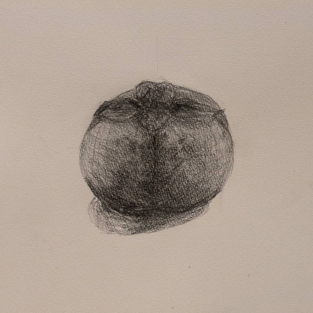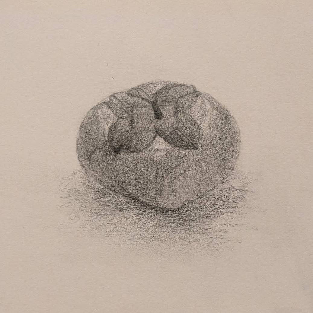 久しぶりのデッサンだったこともあり、丸い果物の中でも比較的特徴がしっかりあるラ・フランスと柿をモチーフに選定。