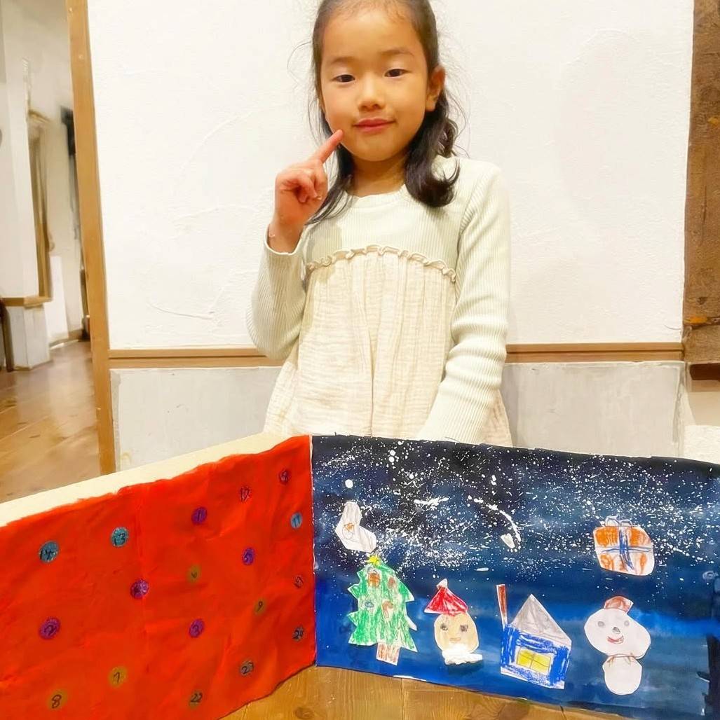 出来上がったアドベントカレンダーを子ども達が見せるとお迎えのママさん達も笑顔♪