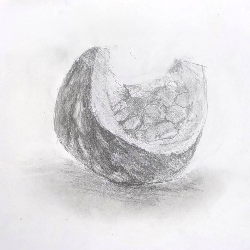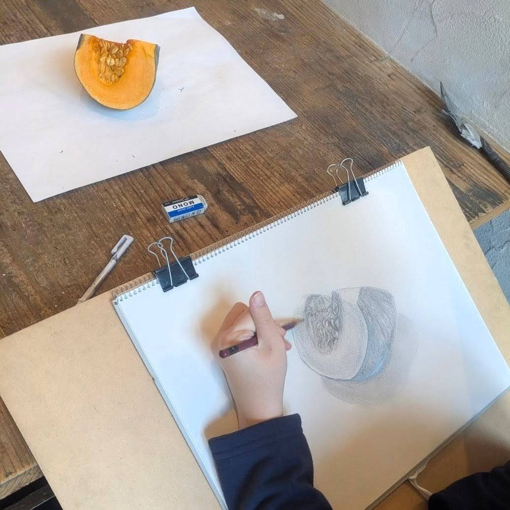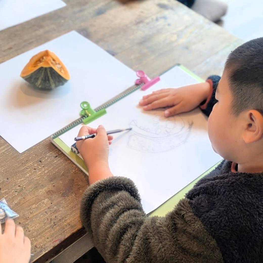 南瓜は中心にある種の部分が複雑で大変だったかと思いますが、個々一生懸命観察し、しっかり描けたと思います。
