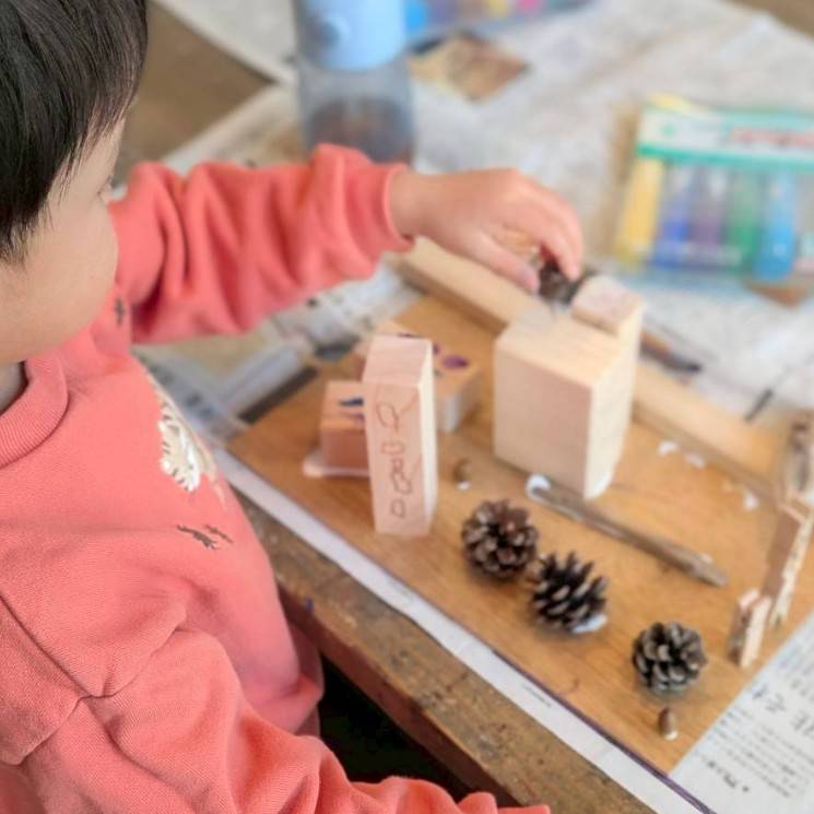 去年集めておいた松ぼっくりやドングリや色々な木の実も渡すと子ども達の目がキラキラします。