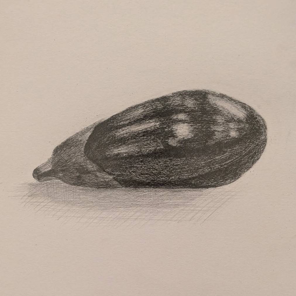 皆、しっかり描き込み、米茄子の重みと映り込み、立体感、其々表現出来たと思います。