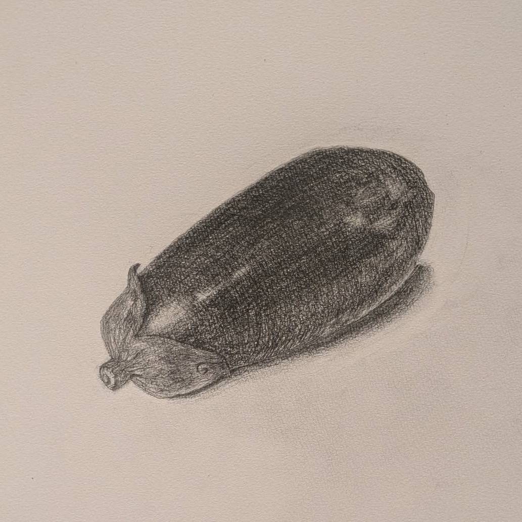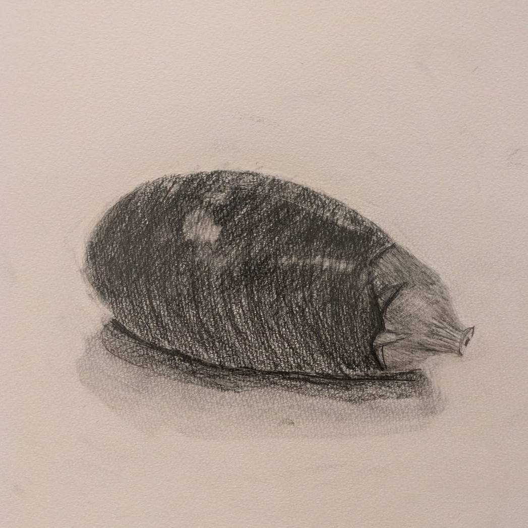 米茄子であることを説明。茄子嫌い…や、米茄子かわいいなど声が聞こえる中デッサンをスタート。